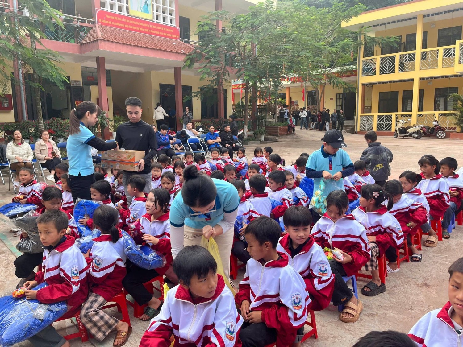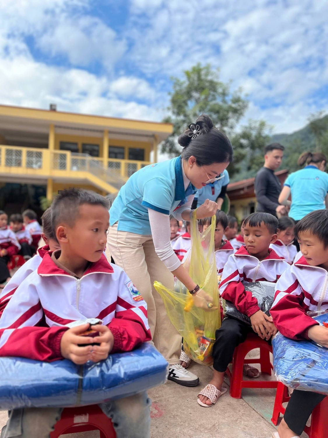 Anh chị còn đem đến cho chúng em những hộp sữa thơm ngon, những gói bánh ngọt ngào, đó là tấm lòng chân thành, tấm lòng nhân ái mà các anh chị đã mang đến cho các em học sinh vùng cao nơi còn nhiều khó khăn.