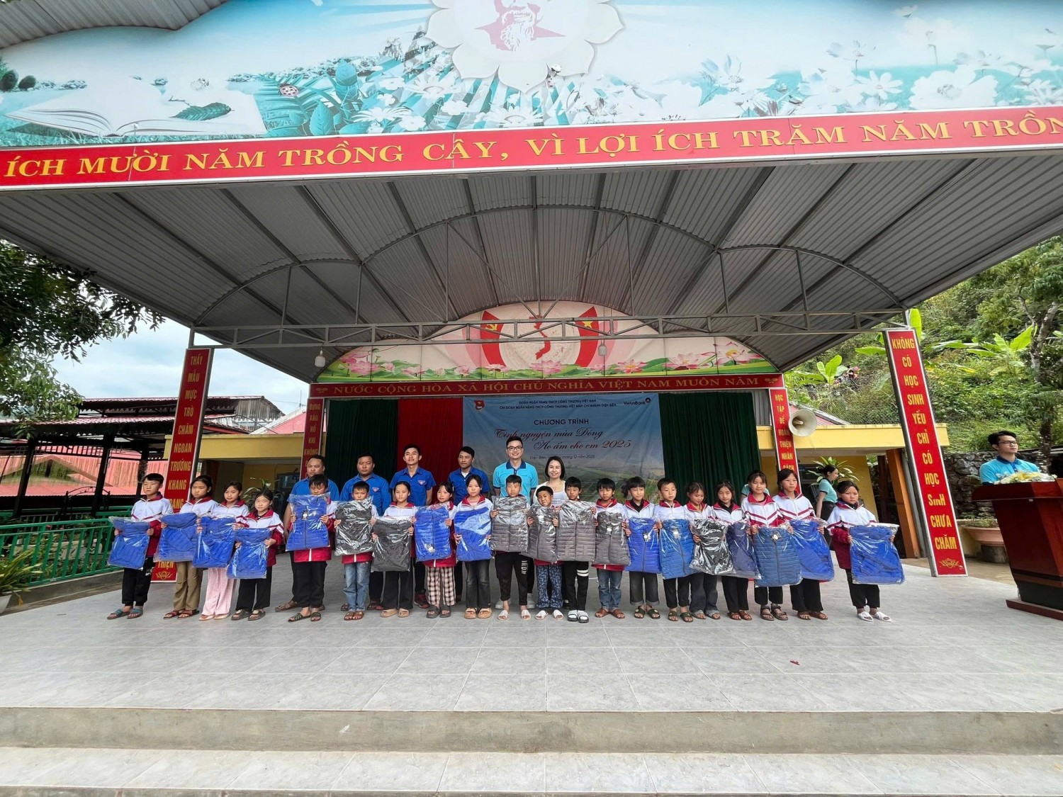 Hôm nay, trong niềm vui và xúc động, thầy và trò trường em xin được gửi lời cảm ơn sâu sắc và chân thành nhất tới các anh chị trong CHỊ ĐOÀN NGÂN HÀNG TMCP CÔNG THƯƠNG VIỆT NAM CHI NHÁNH ĐIỆN BIÊN - NGÂN HÀNG VietinBank với chương trình " Mùa đông áo ấm cho em" đã đem đến cho các em trường PTDT BT tiểu học những chiếc áo ấm trong mùa đông lạnh buốt. Với chúng em đó là hơi ấm, là sự sẻ chia, là tình yêu thương vô bờ bến mà các anh chị đã đem đến cho các em.